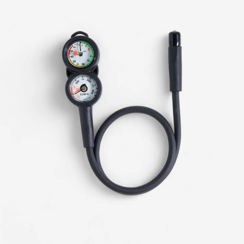Nos équipes de Subea ont développé cette console composée d’un manomètre et d’un profondimètre pour suivre vos paramètres de plongée et votre réserve d’air.Console de plongée avec manomètre 300 bars et profondimètre jusqu’à 60m. Idéal pour suivre ses paramètres de plongée à tout moment.