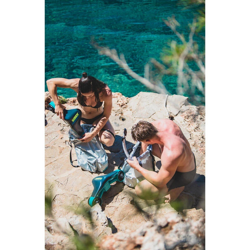 Ce scooter sous-marin auto-flottant Ă propulsion Ă©lectrique vous permet d’explorer les fonds marins en toute libertĂ©.AlimentĂ© par batterie rechargeable, vous pouvez explorer les profondeurs jusqu’Ă 40 minutes. Ce pack comprend deux batteries, une recharge secteur, un set masque/tuba, un sac de transport